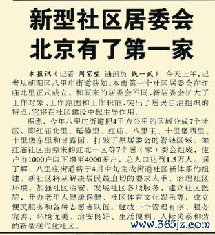 参预新世纪,北京首家当代社区居委会——向阳区八里庄街谈红庙北里社区党委和社区居民委员会揭牌成立。加了“社区”二字,居委会的职能也进行了相应的养息,愈加谨防居民自治、社区服务和社区管束等。(2001年3月20日《北京晚报》4版,《新式社区居委会北京有了第一家》)
